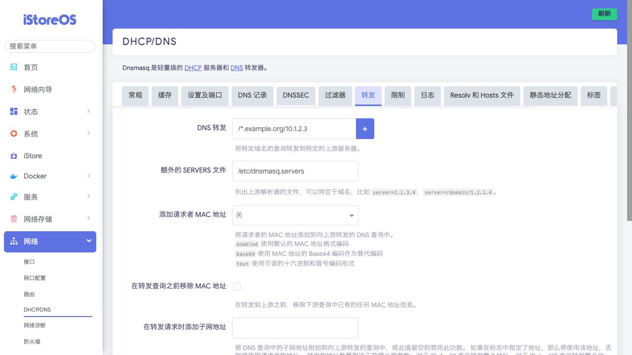 功能位置:网络 > DHCP/DNS → 转发