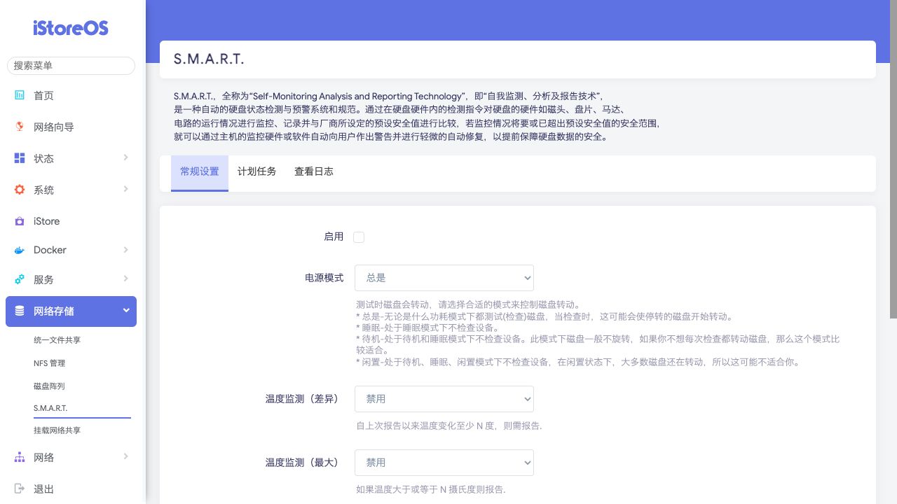 功能位置:网络存储 > S.M.A.R.T. → 常规设置
