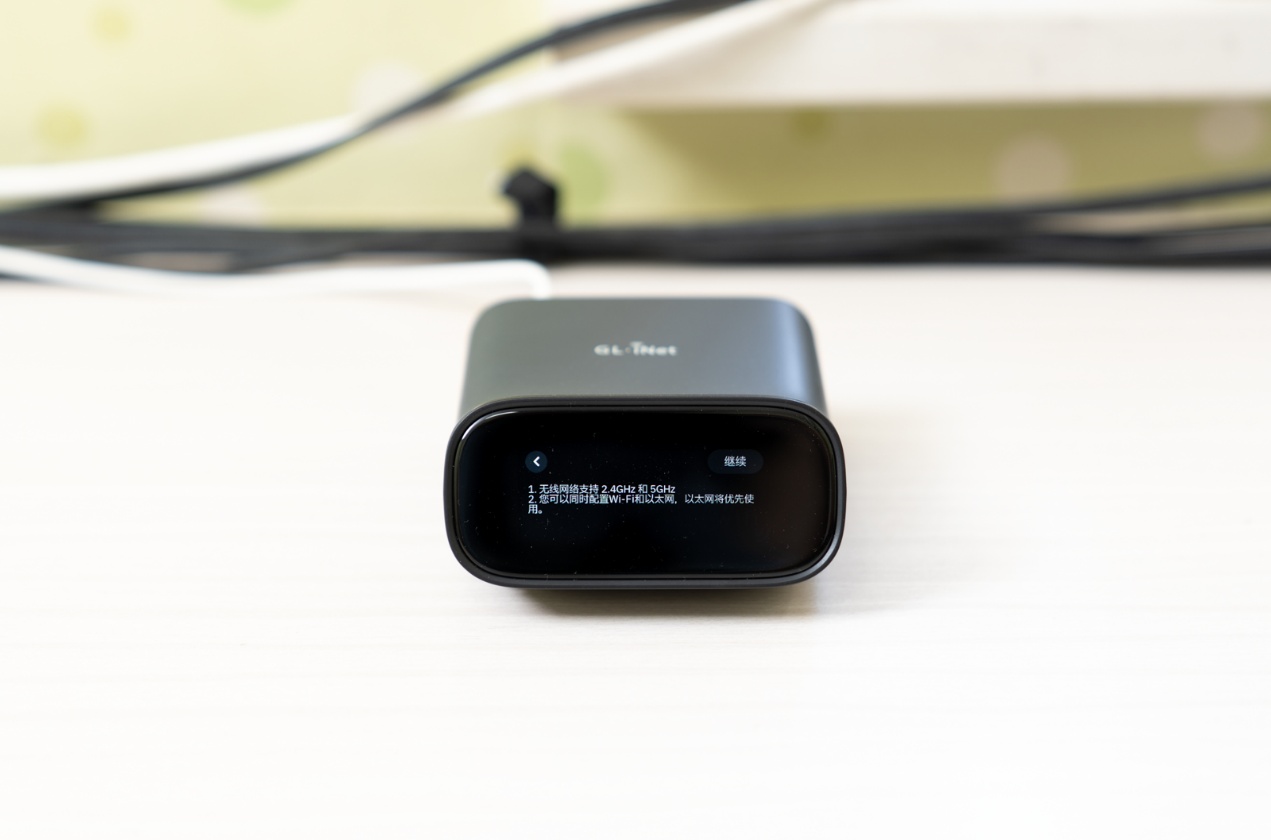 ▲GL-RM10在通电后会在屏幕中央亮起GL.iNet logo。