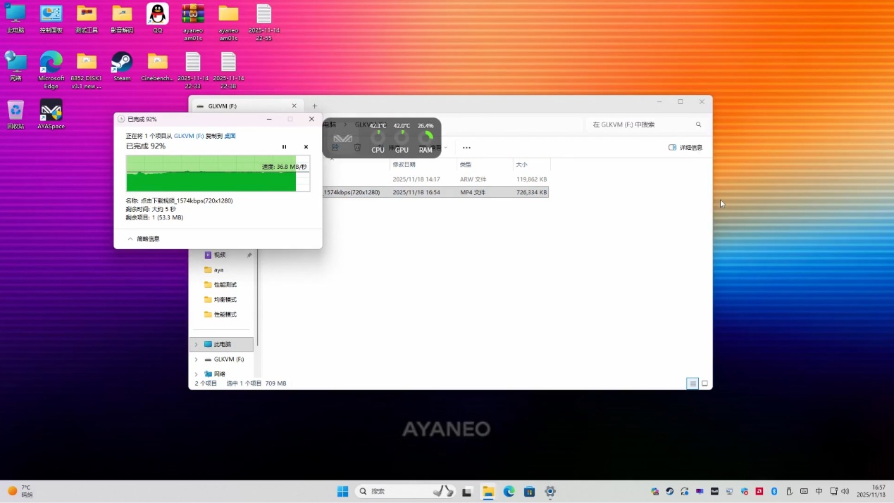 ▲从受控的AM01S向GL-RM10的EMMC取回文件,读取速度在36.8MB/s。