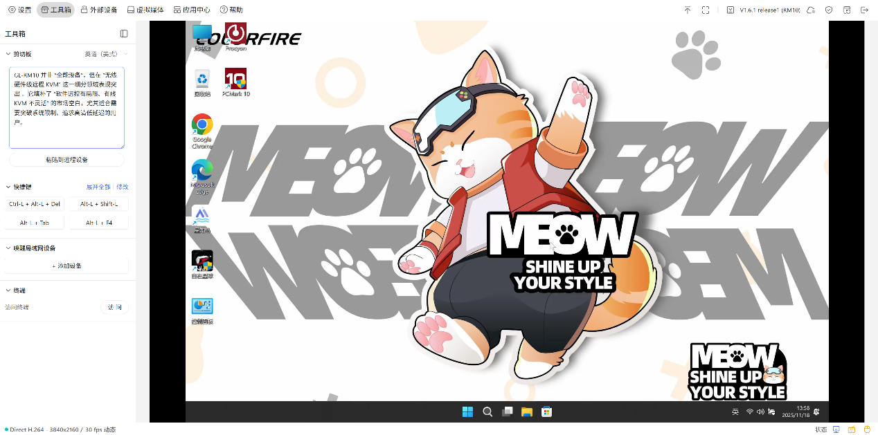 ▲GL-RM10 的剪贴板功能实现了跨设备文本的无缝流转。在控制面板的 “工具箱” 模块中,用户可轻松将控制设备的文本粘贴至受控设备,无需依赖文件传输流程。无论是办公时的代码片段、会议纪要,还是日常沟通的关键信息,都能通过这一功能快速同步,极大提升了远程协作的效率,让硬件级远控场景下的文本交互如同本地操作般丝滑。