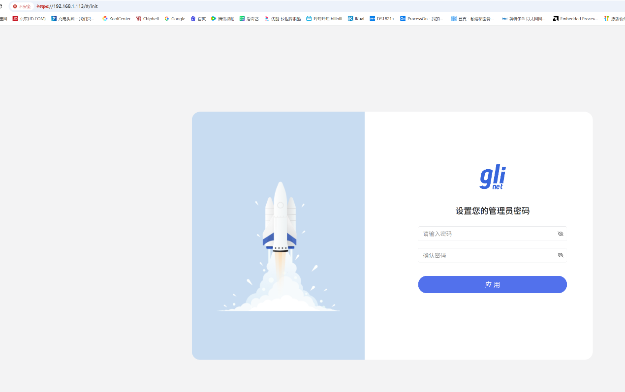 ▲在浏览器输入GL-RM10屏幕上显示的IP地址即可进入设备控制面板的初始化界面。这里需设置管理员密码,即可完成设备安全初始化。