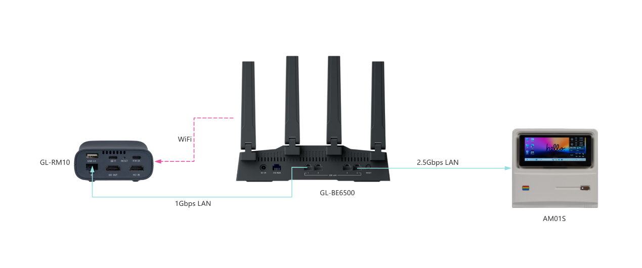 ▲首先将GL-RM10通过有线网络连接GL-BE6500。