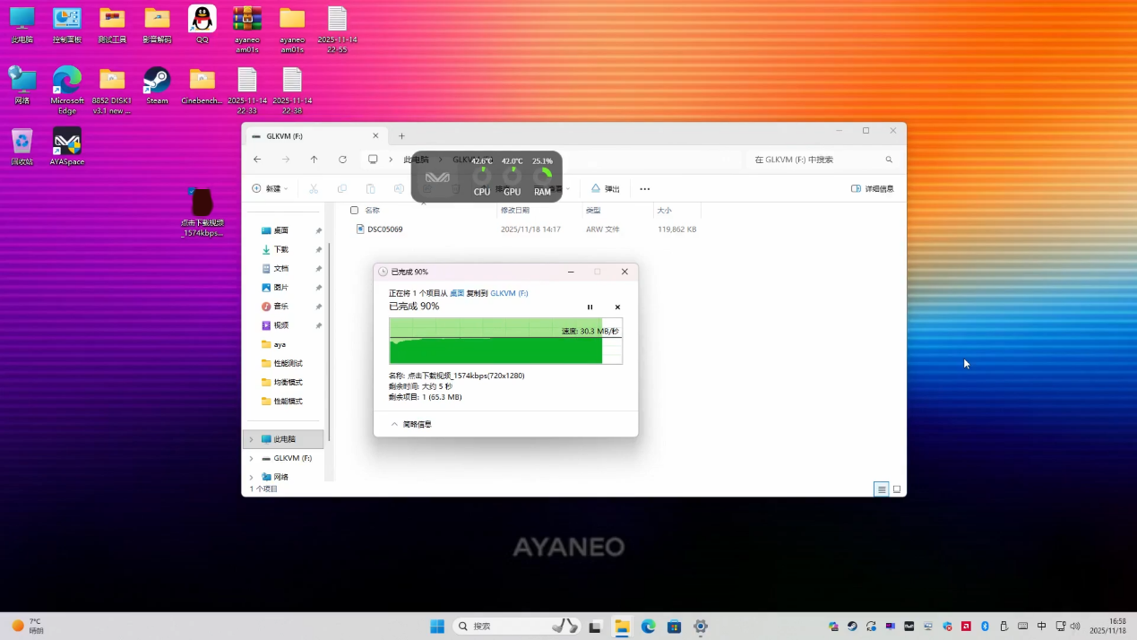 ▲从受控的AM01S向GL-RM10的EMMC上传文件,写入速度在30.2MB/s。