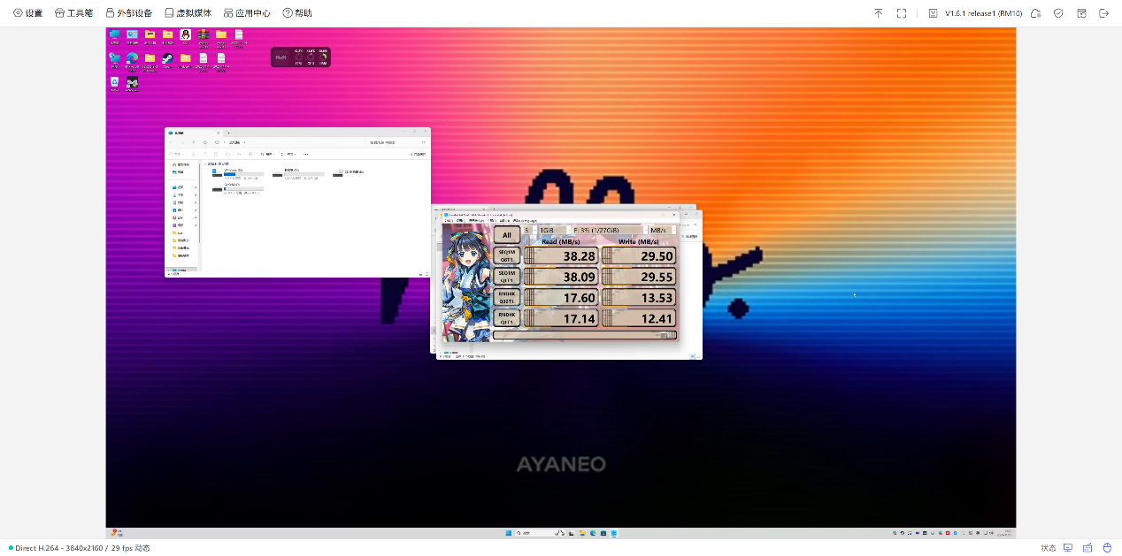 ▲使用CrystalDiskMark对GL-RM10上的EMMC进行测试,可以看到读取速度在38.28MB/s,写入速度在29.50MB/s。