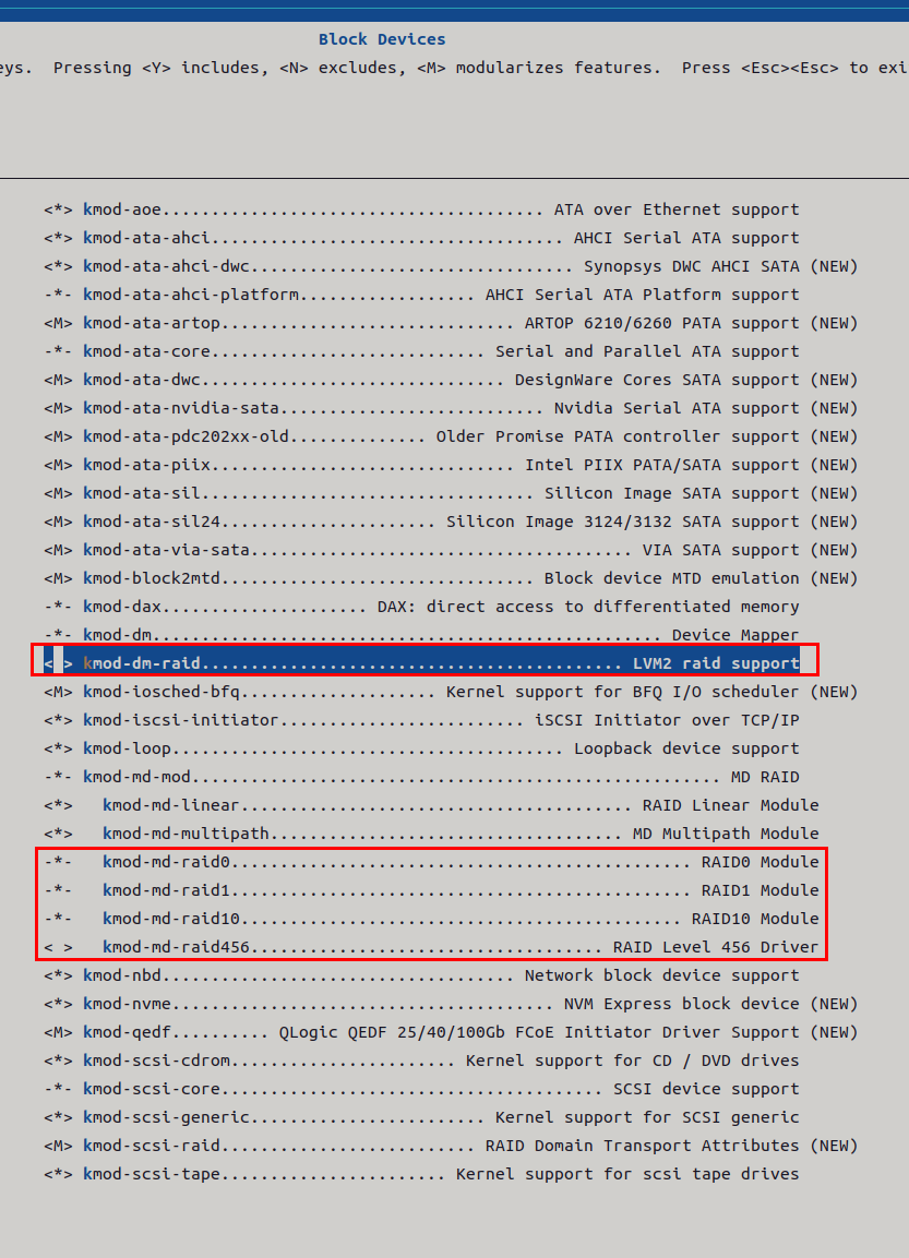 进编译选项看了,除了 kmod-dm-raid 和 kmod-md-raid456(上级依赖 kmod-dm-raid) 可以去除选择,其他的都是有上级依赖存在,而无法取消选择。实在找不到其他几个上级依赖了,来论坛问问,有知道的大佬指点下,先谢谢了。
