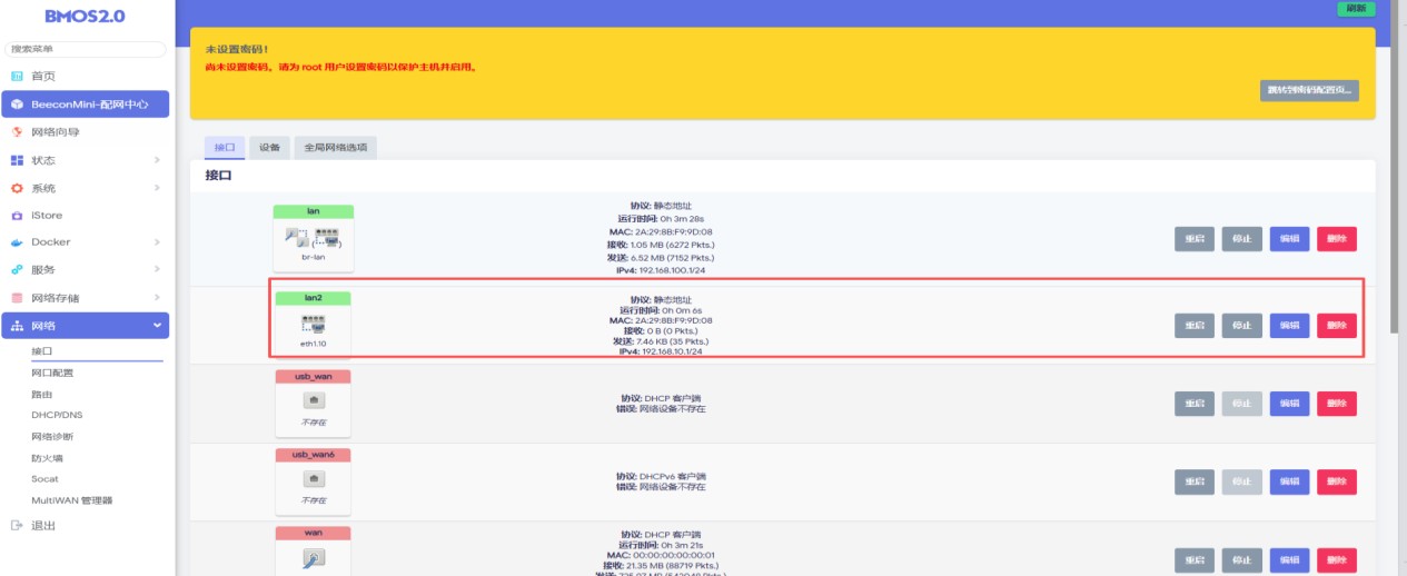 5.保存后网络接口:可以看到IPV4的地址显示192.168.10.1/24则成功