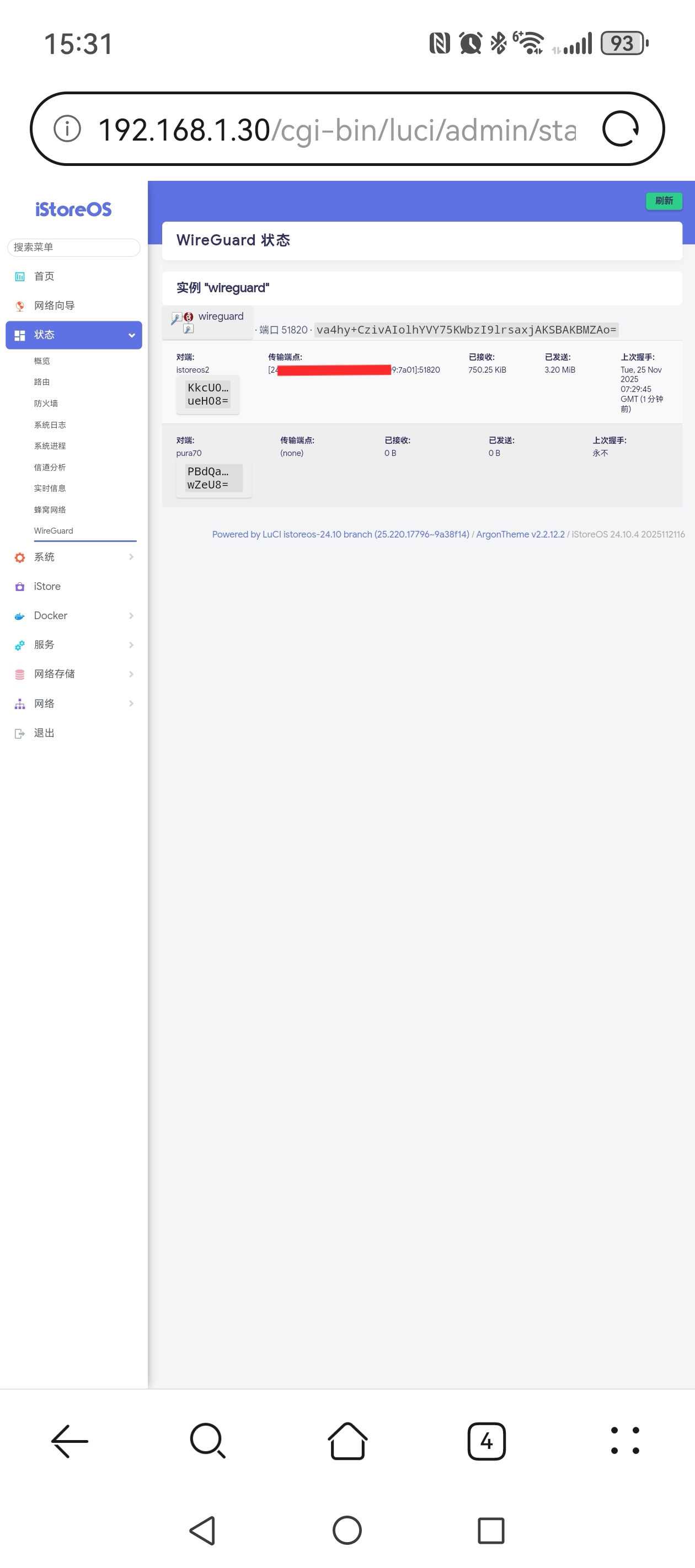 两地两台istoreos用wireguard组网两个局域网内网,显示已经握手成功,但是不能访问彼此对端的路由器,不知道哪里有问题,请高人指点