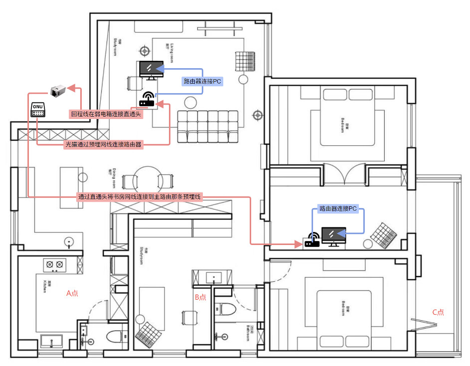 大家好,这里是ASUSGO,最近有位粉丝后台私信,需要帮助他为家里选择适合他的网络设备并进行组网,家里是电信的千兆宽带,我们一起来看看这个户型应该如何进行组网吧。
