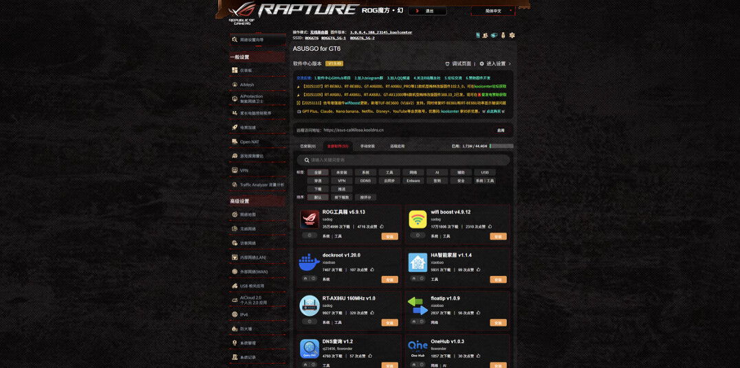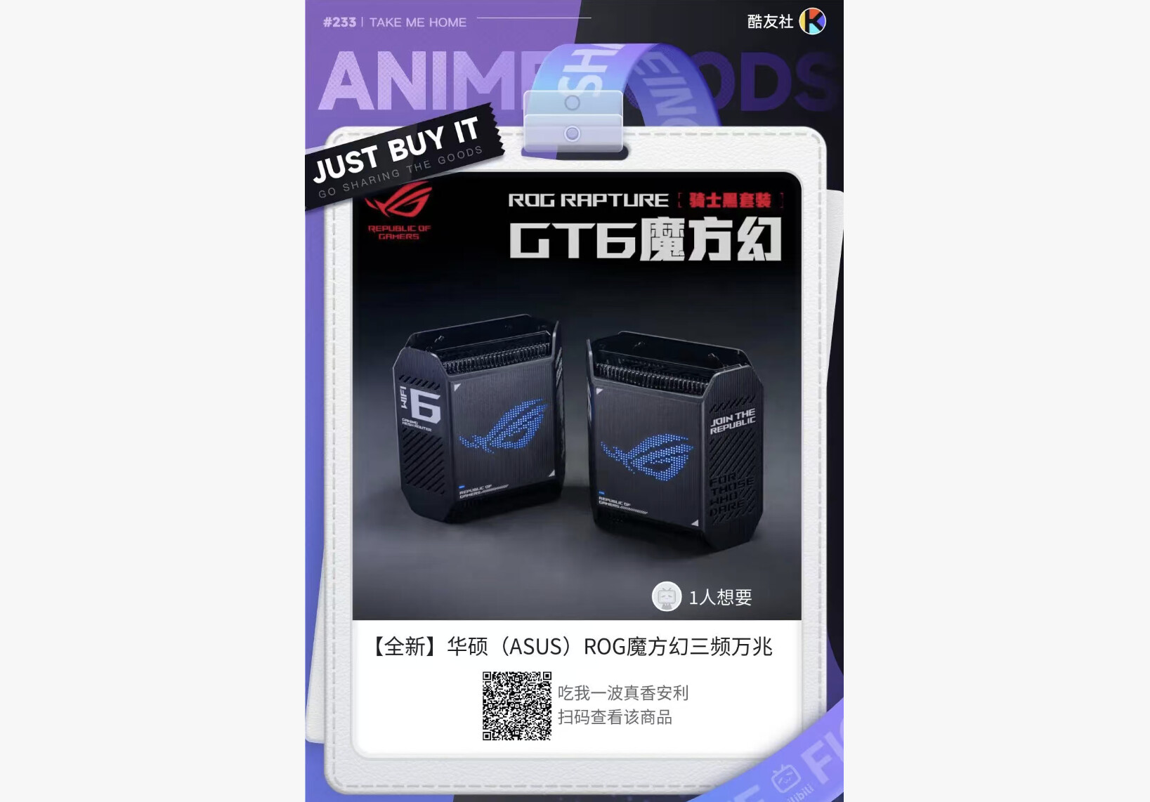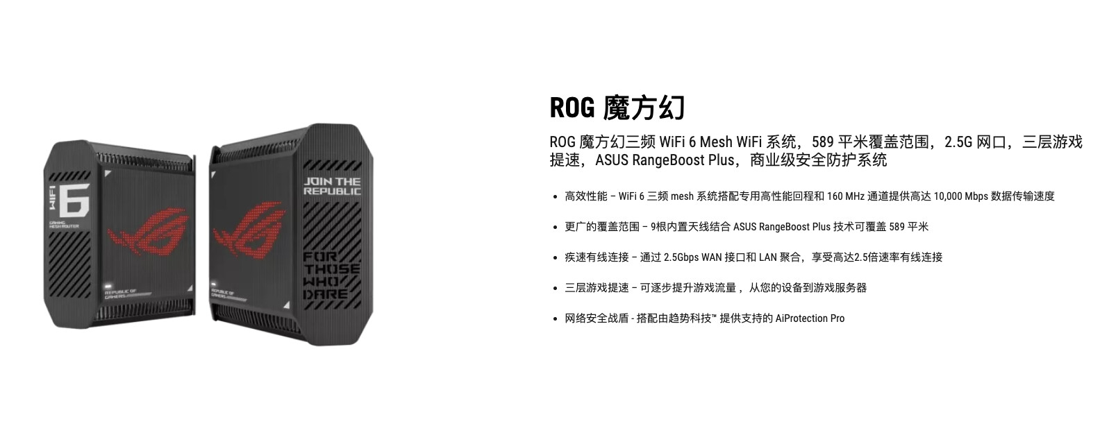 想用华硕的ROG系列(好看),最终选择了一套WIFI6的魔方幻(双频5G WiFi的产品)。