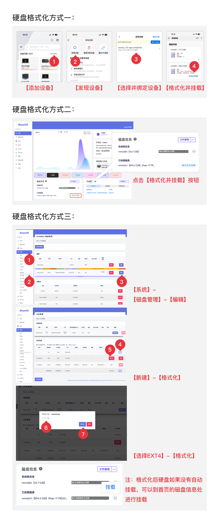 如果你的硬盘还没有格式化成EXT4,可以参考下方格式化硬盘方式:
