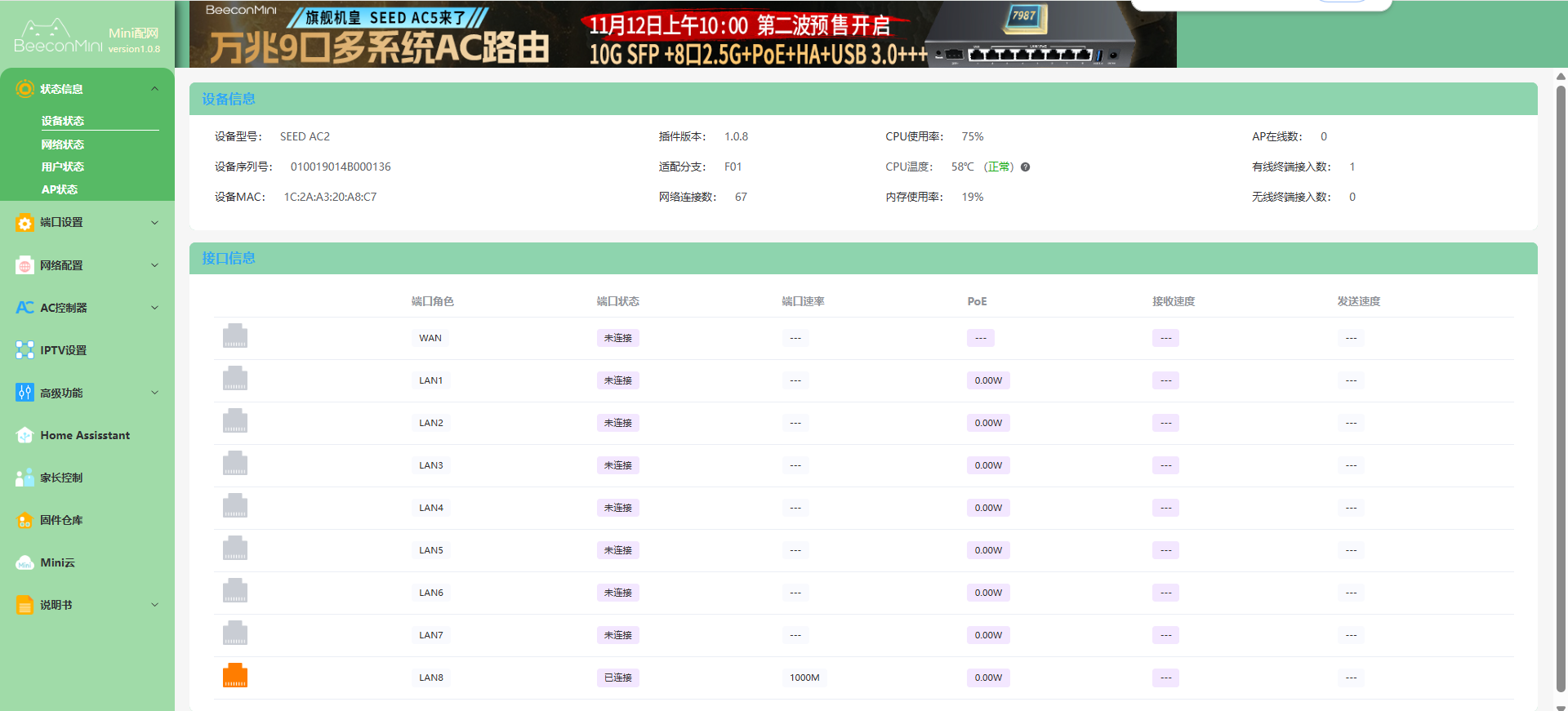 - AC2 升级最新的 iStoreOS 固件;SEED AC2 固件下载
