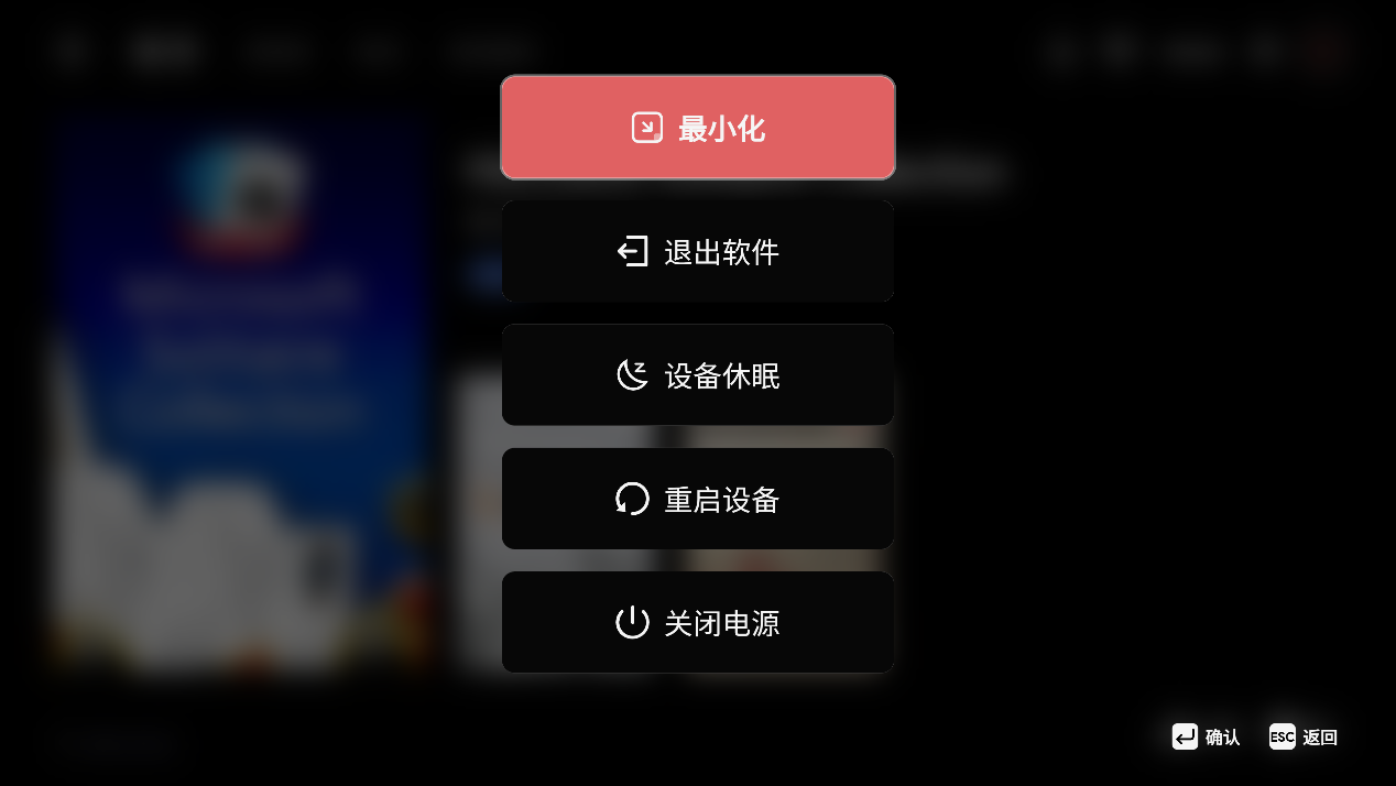 ▲最后点击AYASpace右上角的电源按钮,可以对设备进行休眠、重启、关机,也可以选择最小化或者退出AYASpace软件。