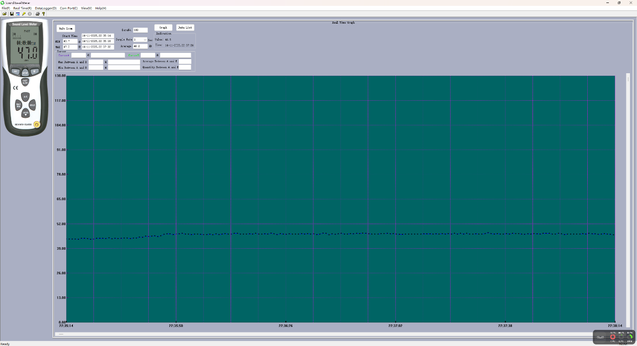 ▲环境噪音180秒内噪音最大为34.8dB,噪音最低为34.7dB,噪音平均值在34.7dB。