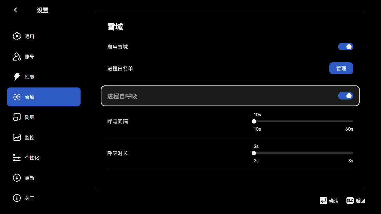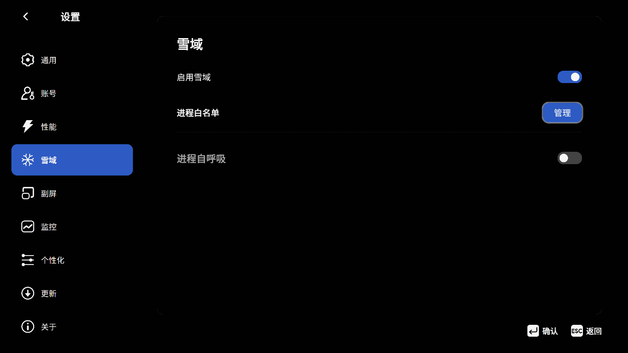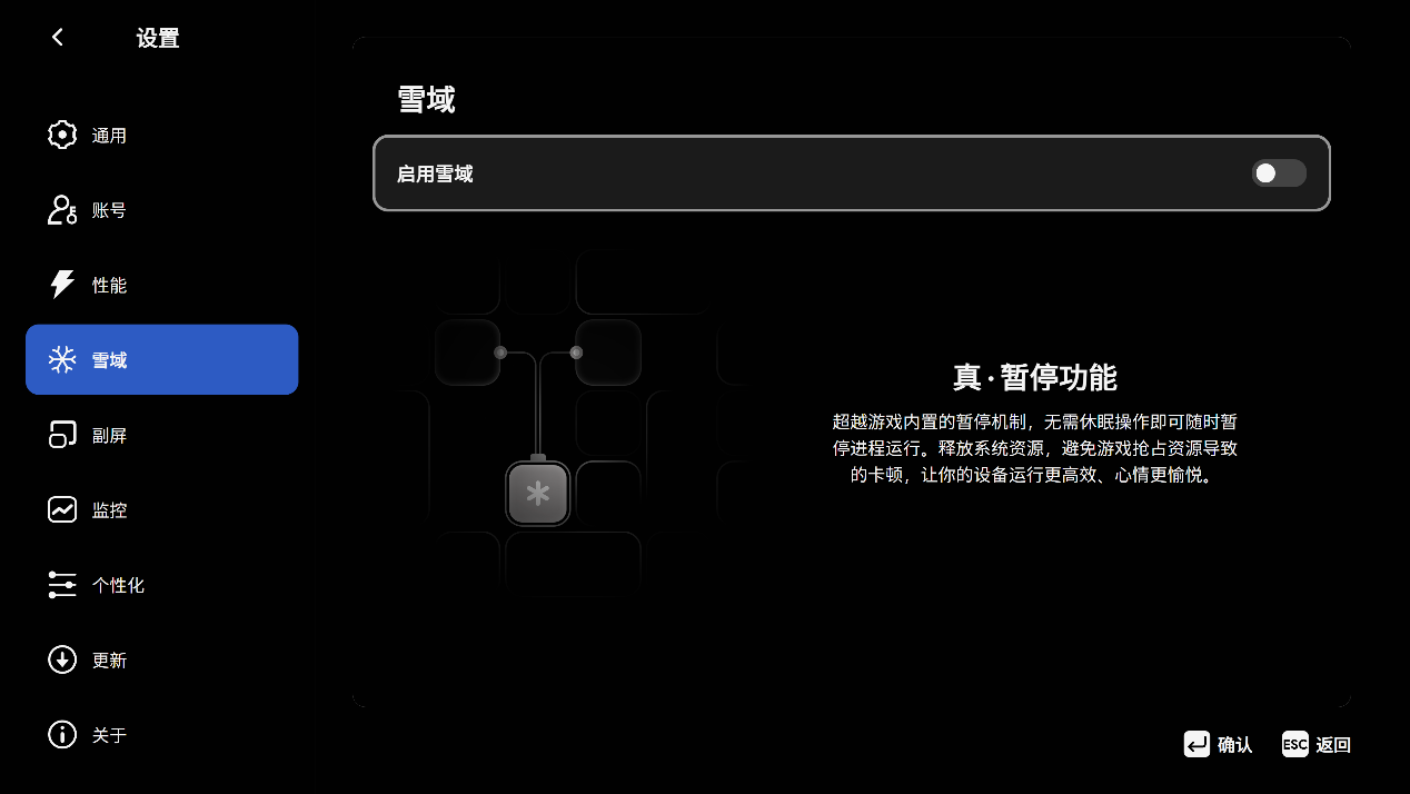 ▲"雪域"是 AYASpace 3.0版本引入的革命性进程管理引擎,专为 Windows 掌机设计,通过 “冰封进程、秒切恢复、低功耗待机” 三大核心特性,实现了游戏体验与续航能力的双重提升,让 AYANEO 设备在移动游戏场景中更接近主机级体验,同时解决了 Windows 系统长期以来在便携设备上的资源管理痛点。