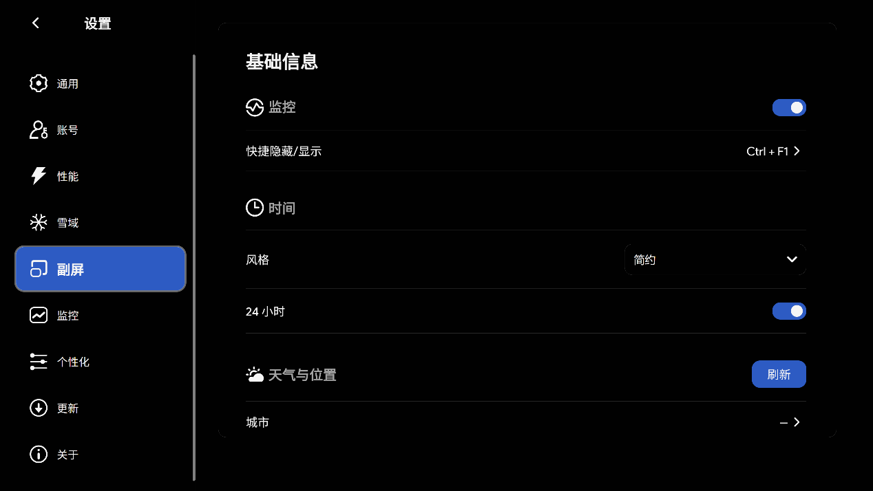 ▲在副屏选项中可以设置在副屏上显示的日期,天气与位置等信息。