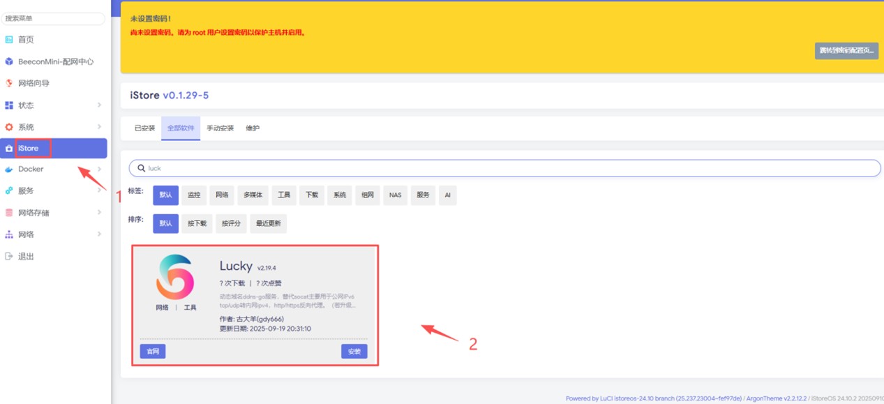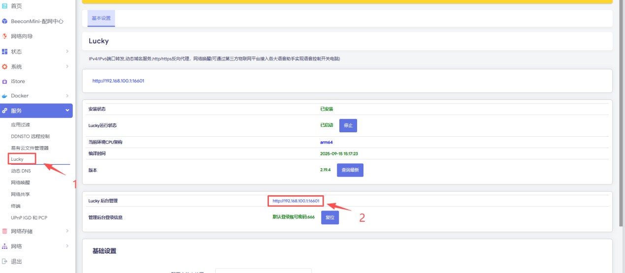 3.服务:lucky—点击lucky后台管理地址进入后台