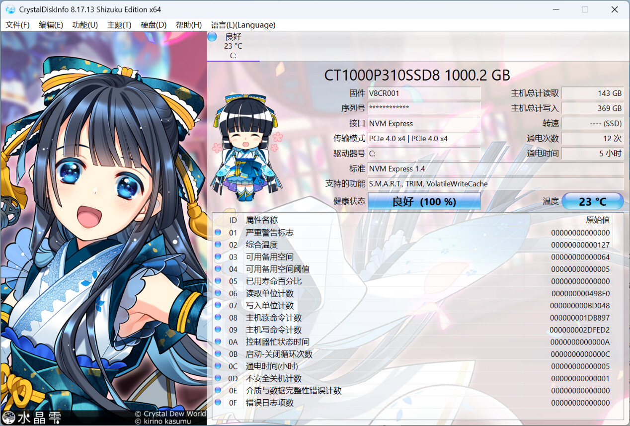 ▲X1 Lite 255搭载的M.2 SSD采用PCIe4.0 x4接口;型号为CT1000P310SSD8 1000.2GB,属于英睿达 (Crucial) P310系列 。