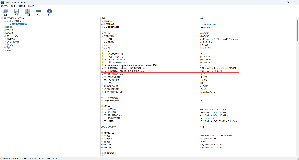 - APU STAPM Limit阶段(243秒后): CPU的长期功耗被控制在54W限额内,以确保稳定运行和散热平衡,避免机身外壳过热等问题。