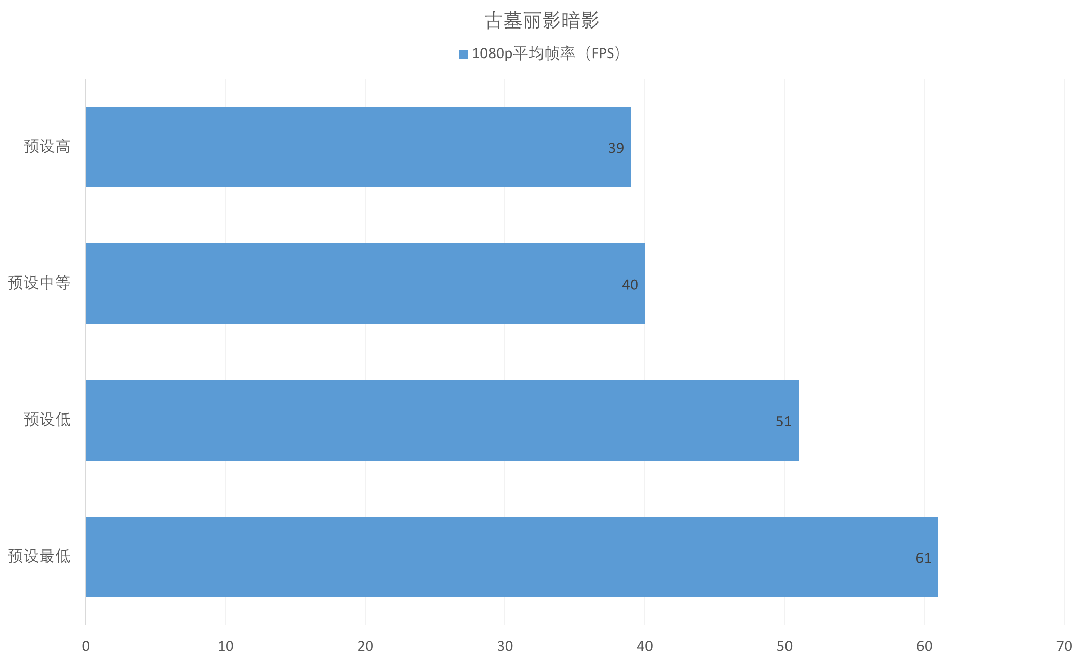 ▲AMD Radeon 780M在1080p下运行3A大作《古墓丽影:暗影》,高画质(39FPS)能 “基本流畅运行”,中等画质(40FPS)流畅度略有提升,但都没到60FPS的丝滑标准;降低到低画质(51FPS)、最低画质(61FPS)时,能获得较好的流畅体验。想在《古墓丽影:暗影》中获得丝滑的游戏体验,建议将画质设置为 “最低”或者降低分辨率。