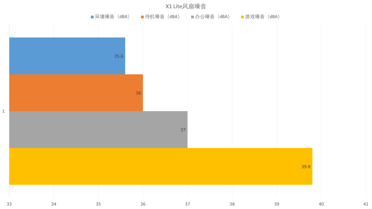 ▲X1 Lite 255待机时风扇噪音在36.0dB附近。