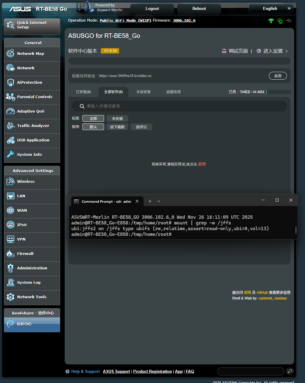 RT-BE58_Go 双清, 软件中心重置, 也看不到软件中心