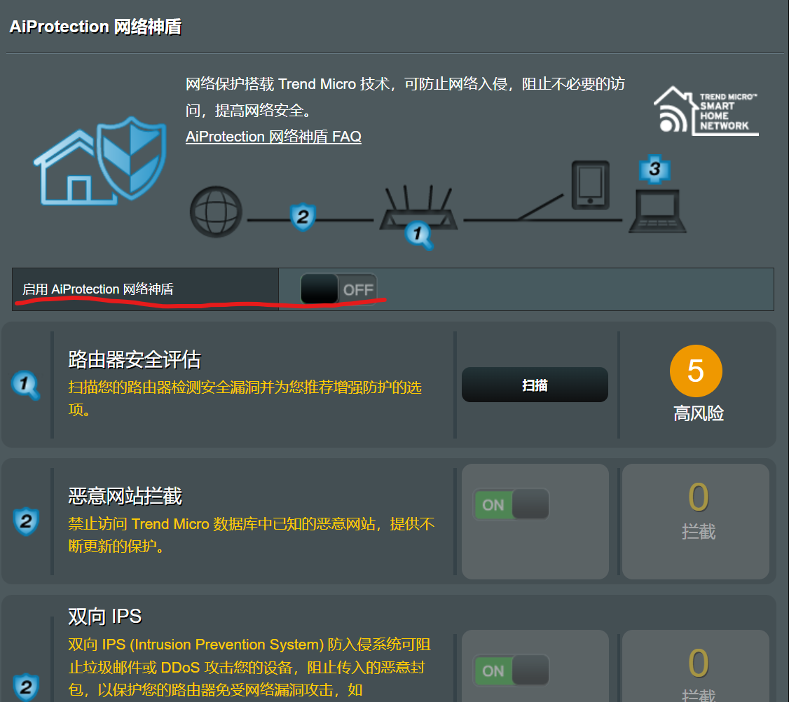 大家伙,你们的AX86U Pro 3006.102.4的“AiProtection 网络神盾”你们能打开吗?